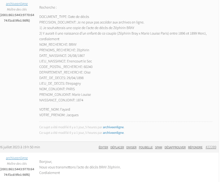 News : Envoyez-nous vos demandes de recherche généalogique.